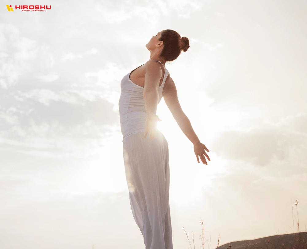 - Đưa tay sang hai bên, hướng ngón tay cái lên trần nhà. Tay đưa sang hết mức có thể sao cho bạn cảm nhận được rõ ngực căng lên. Đảm bảo vai đẩy ra phía sau và xuống thấp một chút.