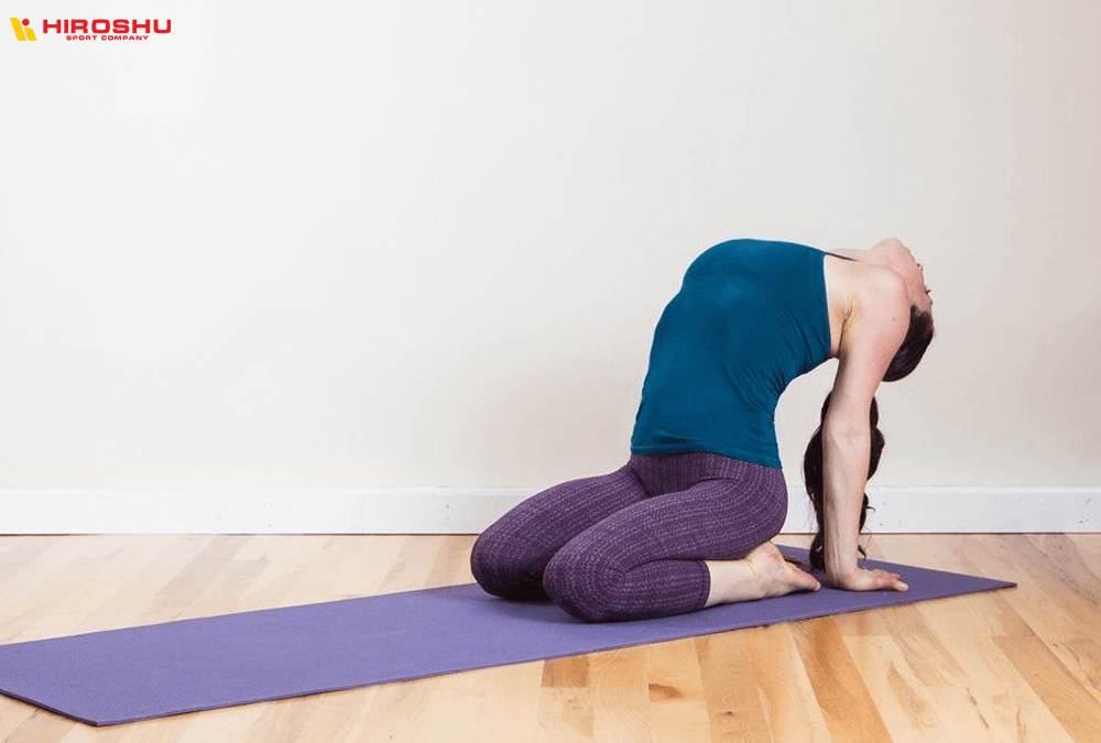 - Trên vị trí vừa đặt tay, thả lỏng phần đầu ngã. Sau đó, ngước cổ lên trần nhà.