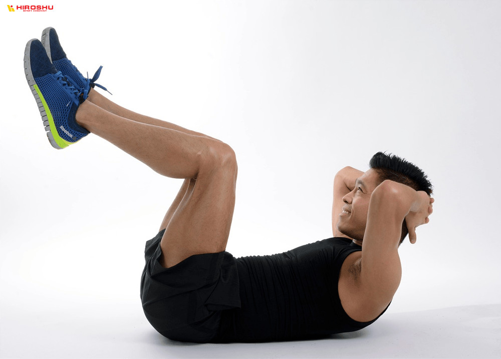 - Cơ bụng siết chặt, nửa người trên gập về phía trước, nhấc cao lưng lên khỏi mặt đất.