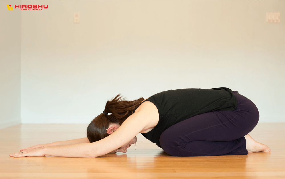 Tư thế em bé là một bài tập kéo giãn cột sống lưng nhẹ nhàng giúp các cơ thắt lưng được thả lỏng, thúc đẩy lưu thông máu, sự linh hoạt theo cột sống.