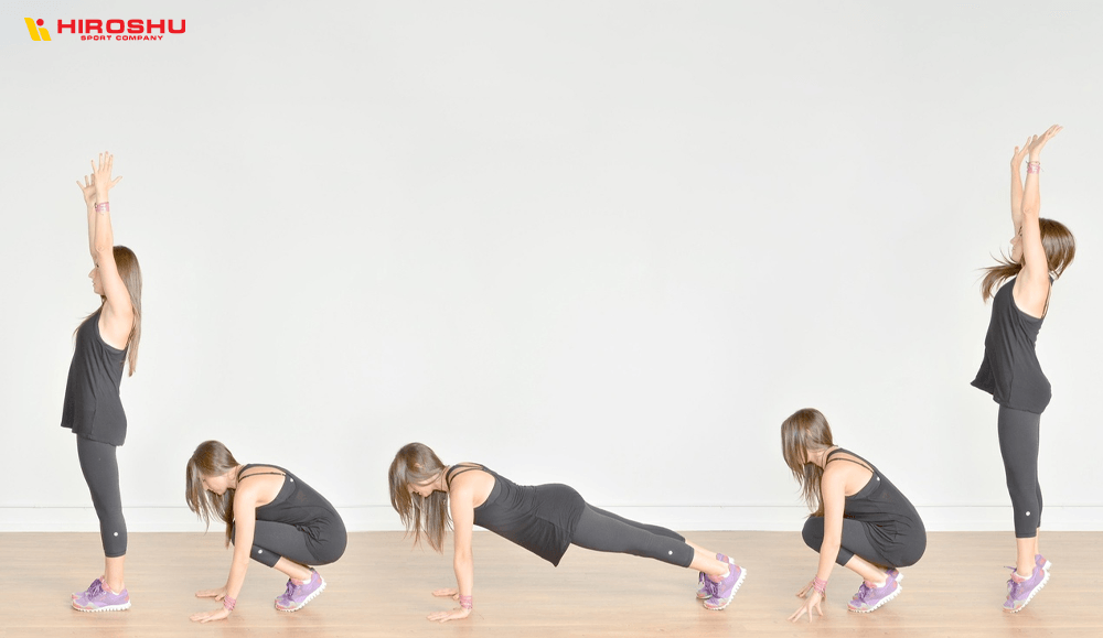 - Hai chân thu lại trở về bước 3, sau đó người bật nhảy lên, đứng thẳng, quay lại tư thế ban đầu.