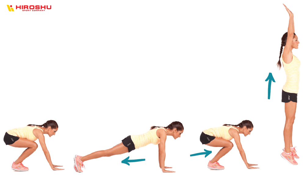 - Nhảy thu chân lại và đứng lên rồi nhảy vươn lên cao.