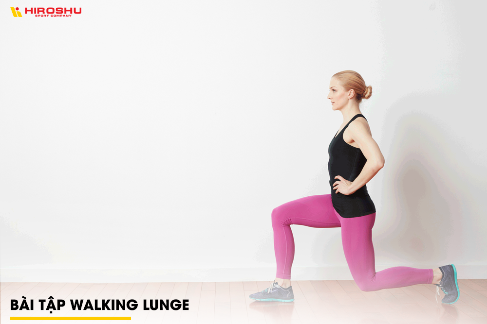 Đây là bài tập với máy chạy bộ rất hiệu quả bạn có thể áp dụng. Walking Lunges hiểu đơn giản là đưa cơ thể của bạn liên tục về phía trước. Song song với động tác đó chúng ta tiến hành nhún gối giống như động tác squat dọc.