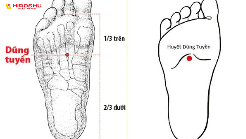 Huyệt dũng tuyền nằm tại vị trí gan bàn chân, bạn thực hiện huyệt dũng tuyền chữa mất ngủ: