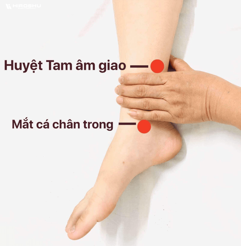 Vị trí của huyệt tam âm giao ngay phía trên mắt cá chân và nằm ở nằm trong chân của bạn:
