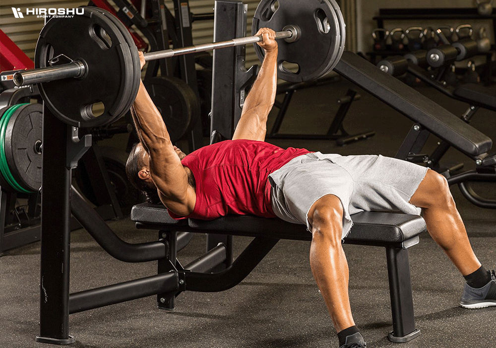 1. Bài tập đẩy tạ trên ghế phẳng (Traditional bench press)