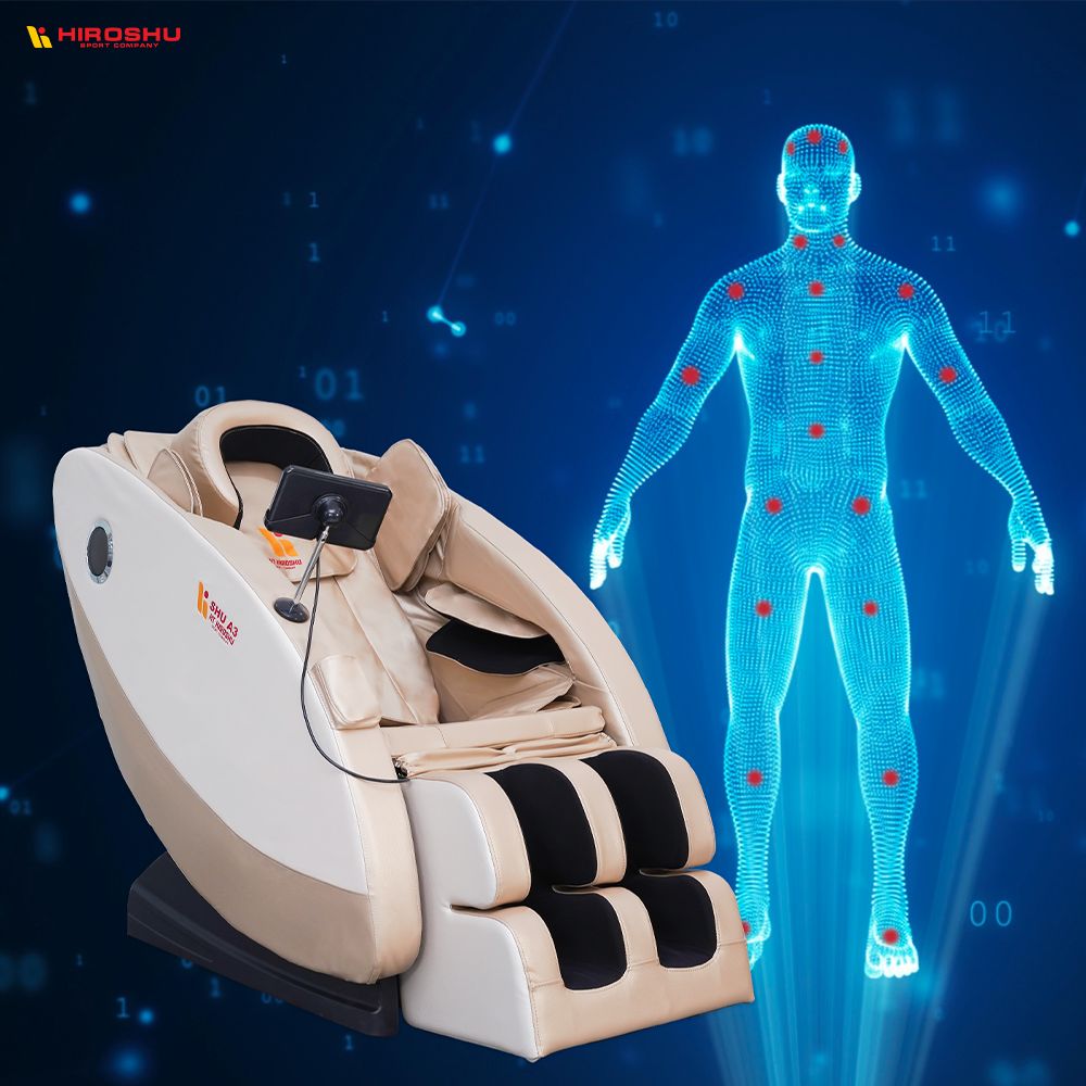 Ngoài ra, con lăn massage được điều khiển bằng trí tuệ nhân tạo thông minh AI, tích hợp cảm biến quang học Scanning chạy qua cơ thể trong 20-30 giây đầu khi ghế massage hoạt động. Từ đó, các thông tin của cơ thể được xác định và thu thập chính xác nhất.