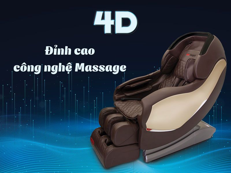 Ghế massage 4D, dòng ghế được trang bị công nghệ sản xuất hiện đại nhất trên thế giới cho đến thời điểm này. So với ghế massage 2D hoặc 3D, ghế massage toàn thân 4D hơn hẳn cả về quãng đường và số lượng bi lăn cũng như nhiều tính năng tiên tiến khác.