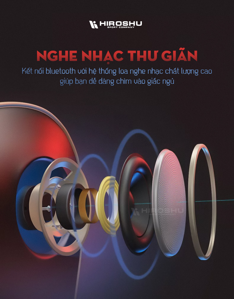 Công ty HIROSHU SPORT còn tinh tế tích hợp thêm đầy đủ công nghệ thông minh, thân thiện với con người bao gồm: các tính năng hẹn giờ, kết nối Bluetooth, nghe nhạc Hi-Fi, có thể vừa thư giãn vừa thư thái nghe nhạc.