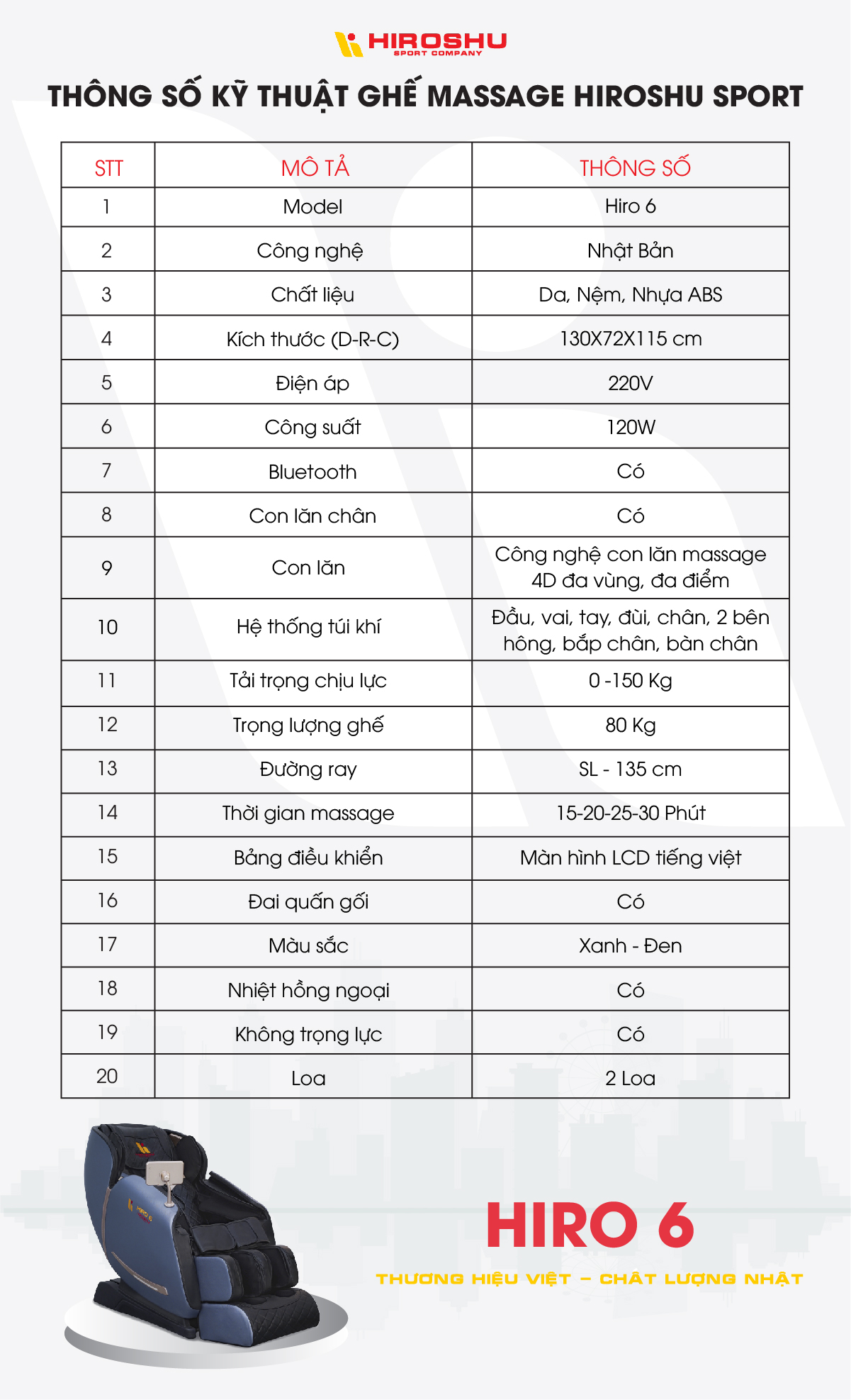 GHẾ MASSAGE HIROSHU HIRO 6 - NGƯỜI BẠN CỦA MỌI GIA ĐÌNH