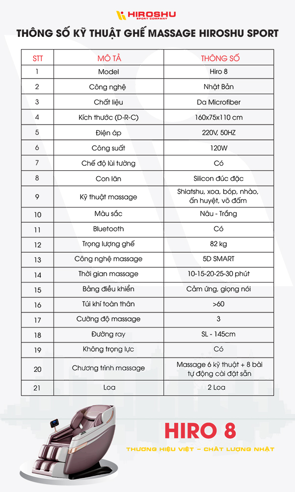 Ghế massage toàn thân cao cấp Hiro 8 công nghệ thế hệ mới 5D. Từ kiểu dáng, bài tập, sử dụng trí tuệ nhân tạo AI cho tới điều khiển giọng nói thông minh sẽ chinh phục mọi khách hàng khó tính nhất