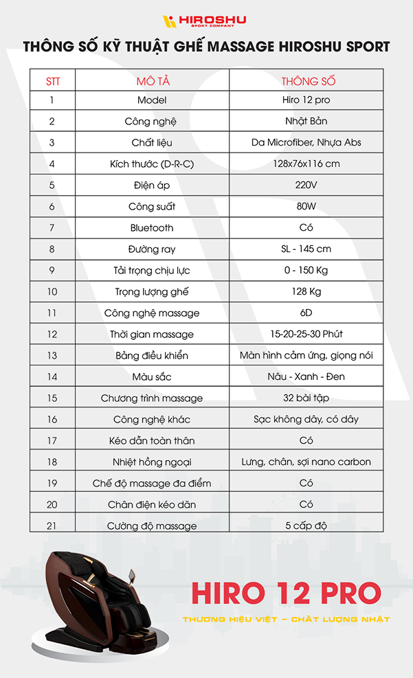 GHẾ MASAGE CAO CẤP HIRO 12 PRO