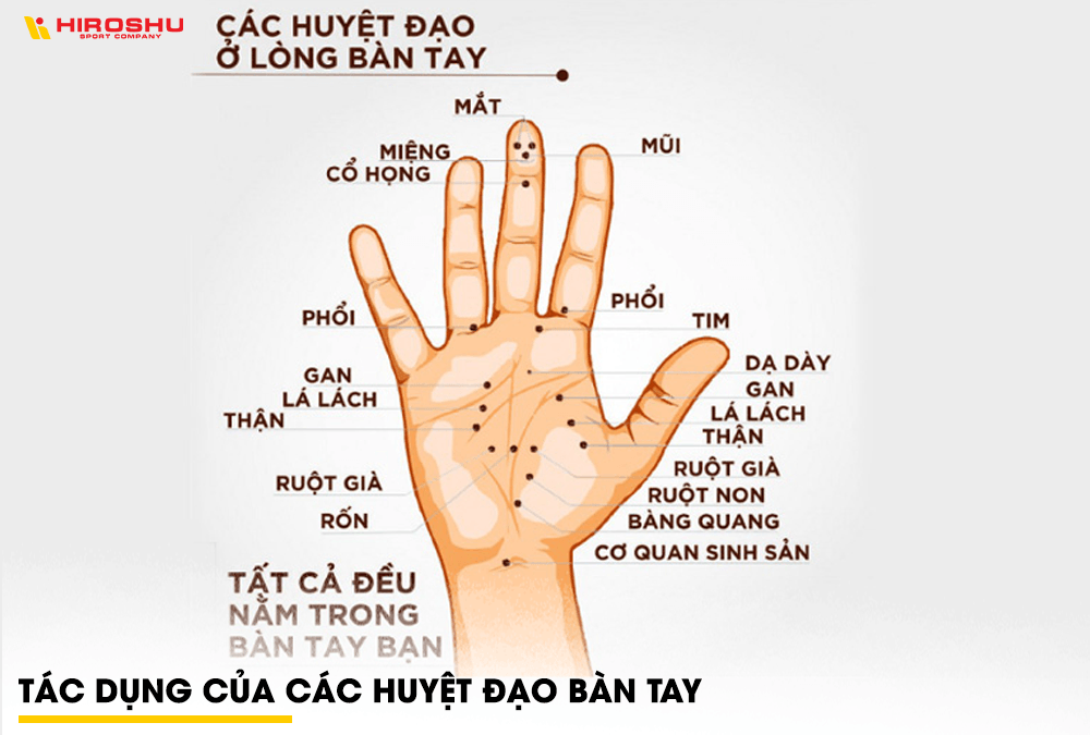Có rất nhiều huyệt đạo nằm trên lòng bàn tay, tác dụng của mỗi huyệt đạo thường khác nhau và hỗ trợ các bệnh lý khác nhau.. Một ví vị trí huyệt đạo trên bàn tay như: