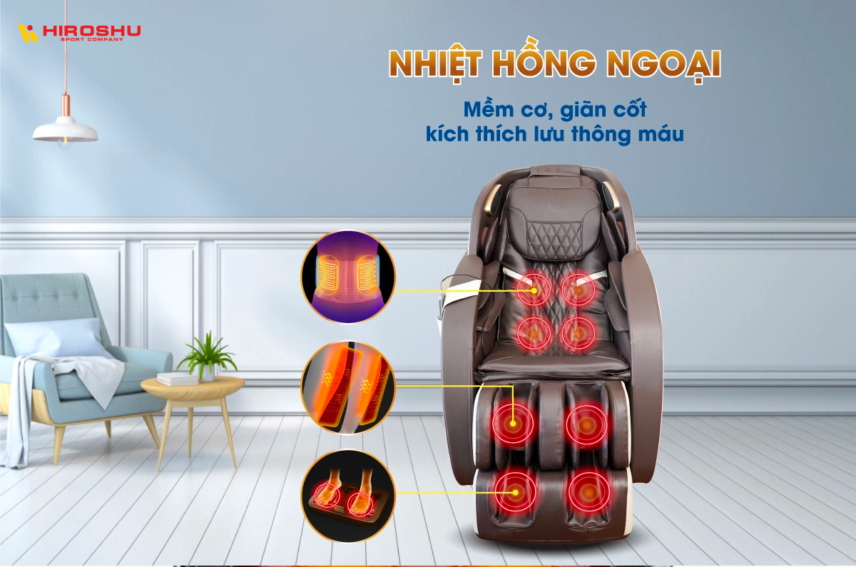 Trên đây là những thông tin về tính năng massage nhiệt hồng ngoại được tích hợp trong ghế massage. Đừng quên ghé tới Hiroshu Sport để được tư vấn rõ hơn các sản phẩm nhé.