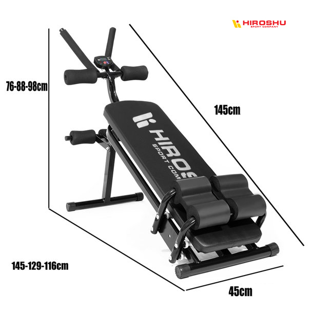 Một siêu phẩm đa năng với sự kết hợp giữa ghế cong tập bụng và bánh xe trượt tạo nên phòng gym mini ngay trong chính ngôi nhà bạn. Sở hữu đa dạng tính năng và ưu điểm, máy tập Hiro S3 giúp đánh tan mỡ thừa cứng đầu vùng bụng cho bạn vòng eo con kiến ai cũng mơ ước.