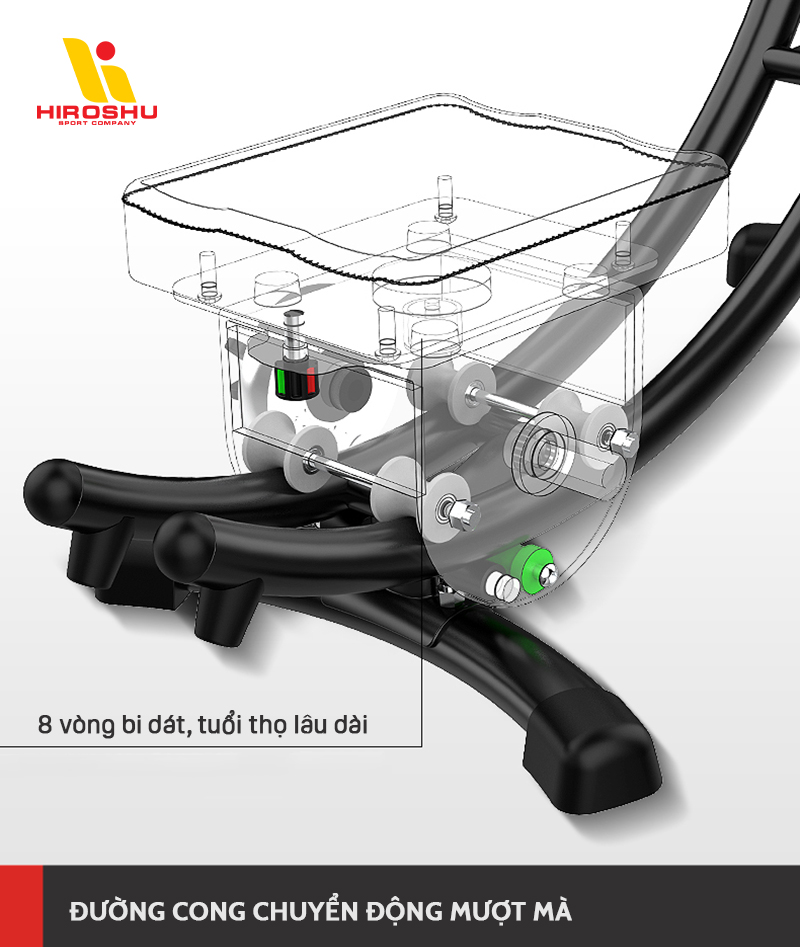 Máy tập SHU FAST được trang bị 8 vòng bi dát làm giảm thiểu lực ma sát trong suốt quá trình tập luyện. Định hướng và giữ các chi tiết quay hoặc trục quay ổn định, từ đó chịu tải, chịu lực tác động lên một cách tốt nhất. Vòng bi có tuổi thọ lâu dài, do đó kéo theo tuổi thọ của máy tập cũng tăng lên, tránh các trường hợp hỏng hóc ngoài ý muốn.