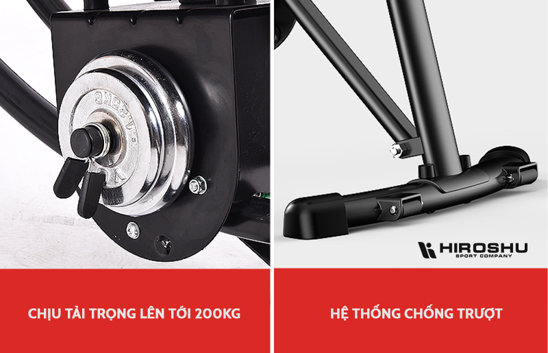 Khung thép cứng cáp chịu mức tải trọng lên tới 200kg cùng khả năng nâng gốc tự động vượt trội cho phép bạn thực hiện các bài tập cười độ cao, đốt cháy calo hiệu quả hơn. Thêm nữa, thiết kế nhỏ gọn, hiện đại giúp tiết kiệm tối đa không gian sống trong gia đình bạn, điểm ấn tượng này đã chinh phục không ít khách hàng ngay từ lần đầu tiên chiêm ngưỡng. Tone màu gam màu đen toát lên vẻ mạnh mẽ, chắc chắn tạo điểm nhấn độc đáo cho không gian nội thất của gia đình bạn.