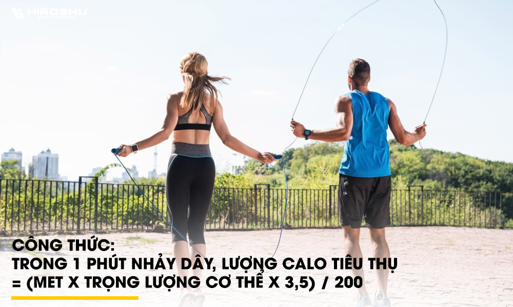 Trong 1 phút nhảy dây, lượng calo tiêu thụ = (MET x trọng lượng cơ thể x 3,5) / 200