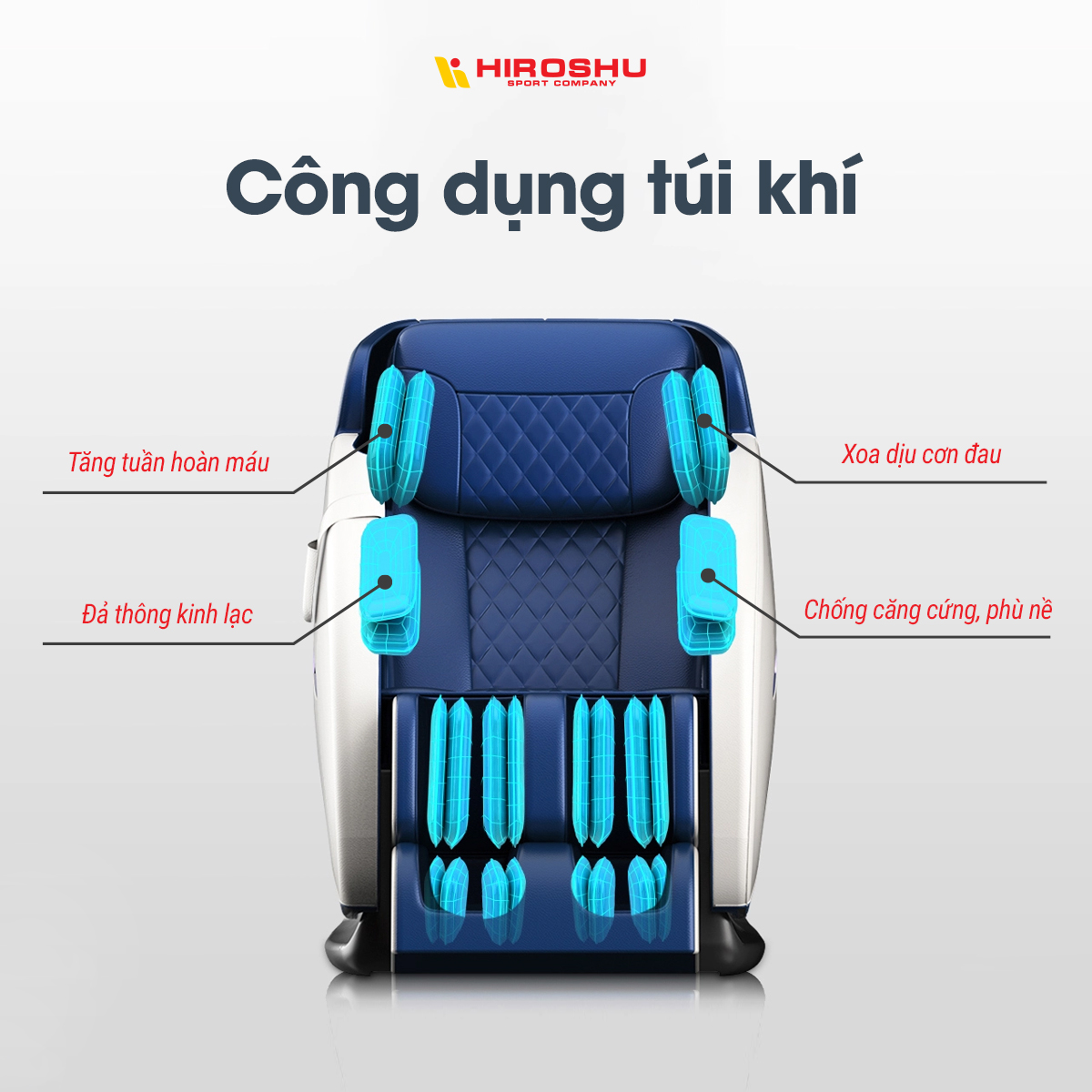 Túi khí ghế massage, một trong những điểm đặc trưng tạo nên sự khác biệt của dòng ghế massage hiện đại ngày nay. Khi mua ghế massage bạn cần cân nhắc đến những chiếc túi khí này để có thể mua được chiếc ghế phù hợp với mình nhất. Vậy hãy cùng Hiroshu Sport tìm hiểu về túi khí massage nhé.
