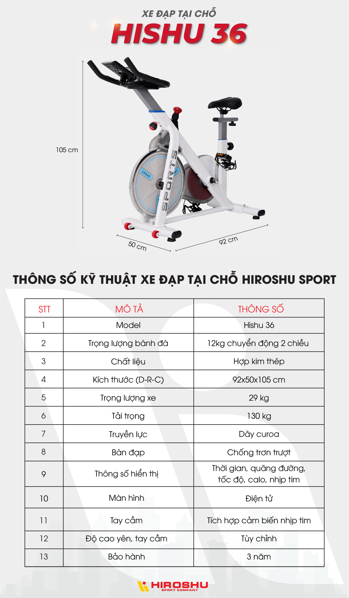 Tải trọng lên tới 130kg, dòng xe đạp của nhà Hiroshu Sport đảm bảo mang lại khách hàng sự thoải mái ngay cả khi tập luyện với cường độ cao. Thiết kế khung sườn chắc chắn theo cấu trúc tam giác, mạnh mẽ được làm từ hợp kim titan chịu lực tốt nên xe đạp Hishu 36 sớm trở thành người bạn không thể thiếu cho mọi gia đình. Lớp sơn tĩnh điện bên ngoài làm tăng vẻ sang trọng của xe và đảm bảo giữ độ bền màu cao.